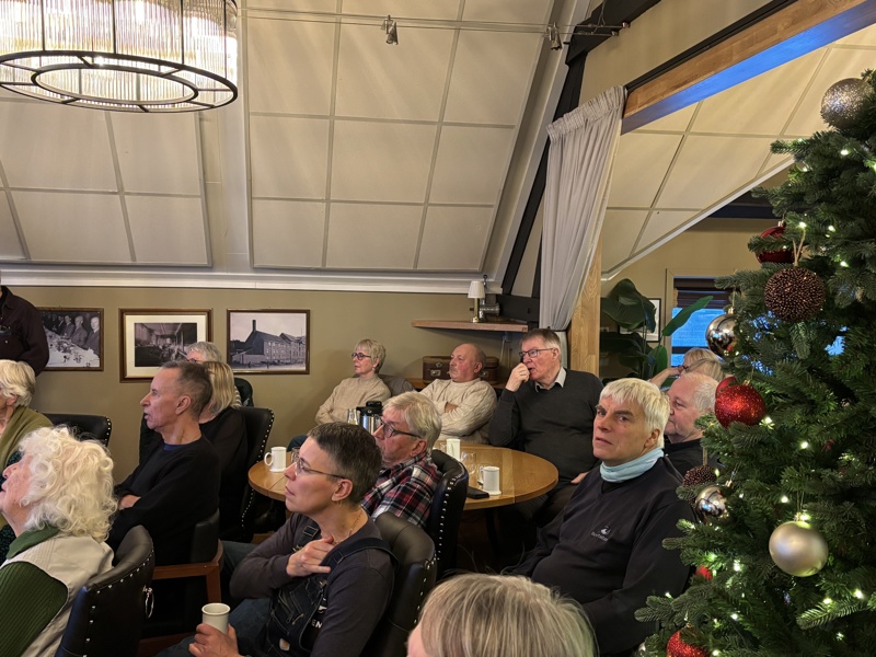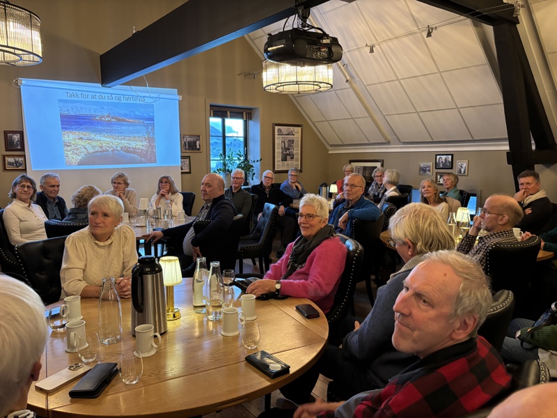 Vi startet oppe i 3.etasje på Skarven kulinariske. Det var fullt hus, og vi måtte dra stolene inn i det største rommet for at alle skulle se og høre. Utrolig engasjert og kunnskapsrik foredragsholder.