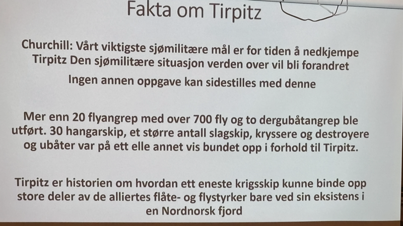 Veldig bra foredrag om vår nære historie. Noen av våre medlemmer har opplevd bombinga av Tirpitz. Arna Sundquist er en av dem. Hun har gebursdag 12 november, og hun husker godt bombinga og dramatikken rundt.