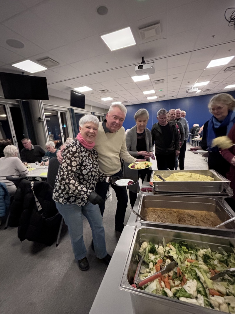 Da møtet var ferdig var vi klare for middag, kaffe og kake. God mat og god stemning som vanlig.